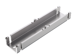 für BR1980 Basisschiene, Länge 100 mm, Zentrierungszahn mittig, je 1 Kerbe seitlich, Außenmaße Querschnitt 22 x 15 mm, S355J0 verzinkt
